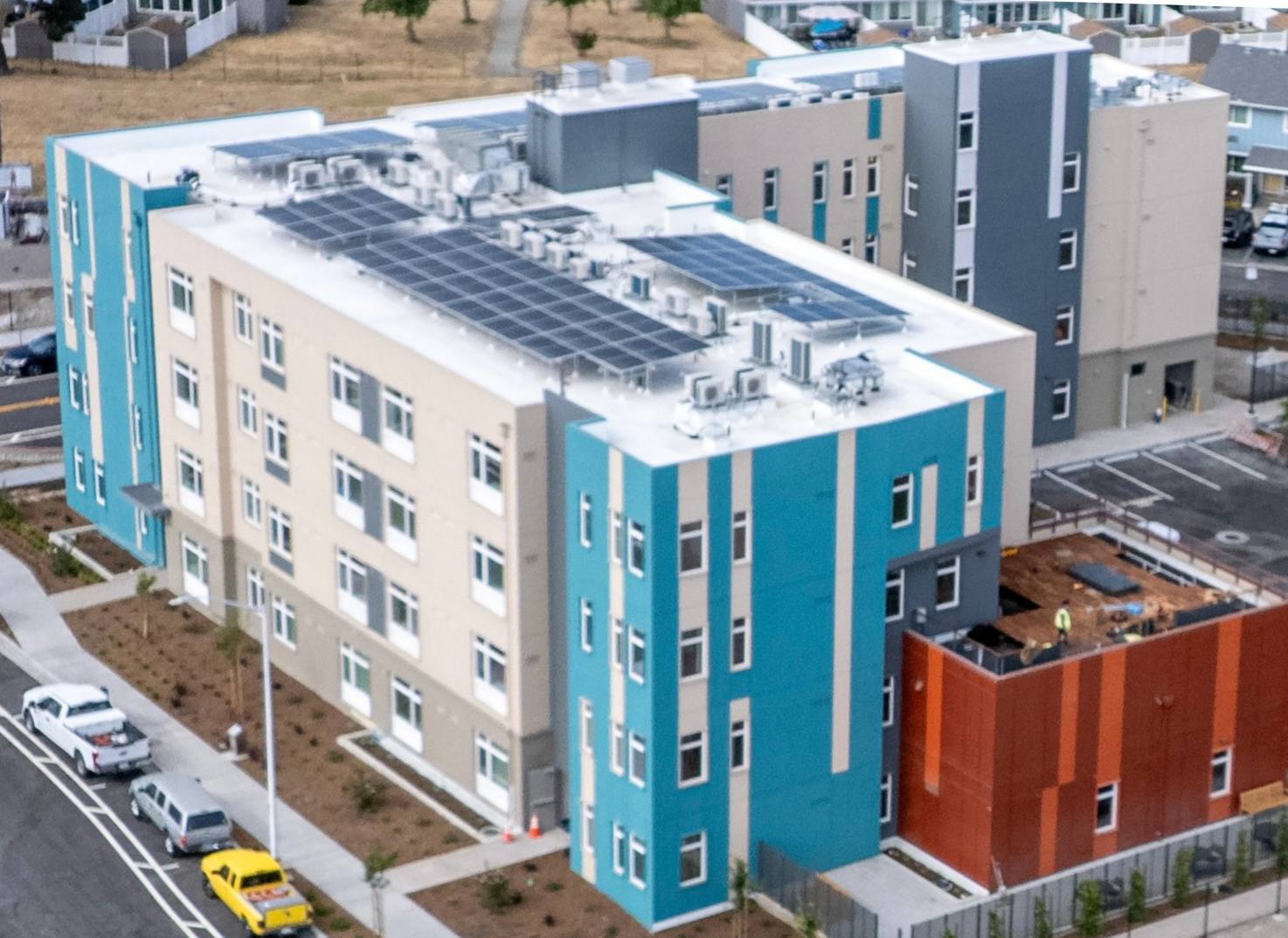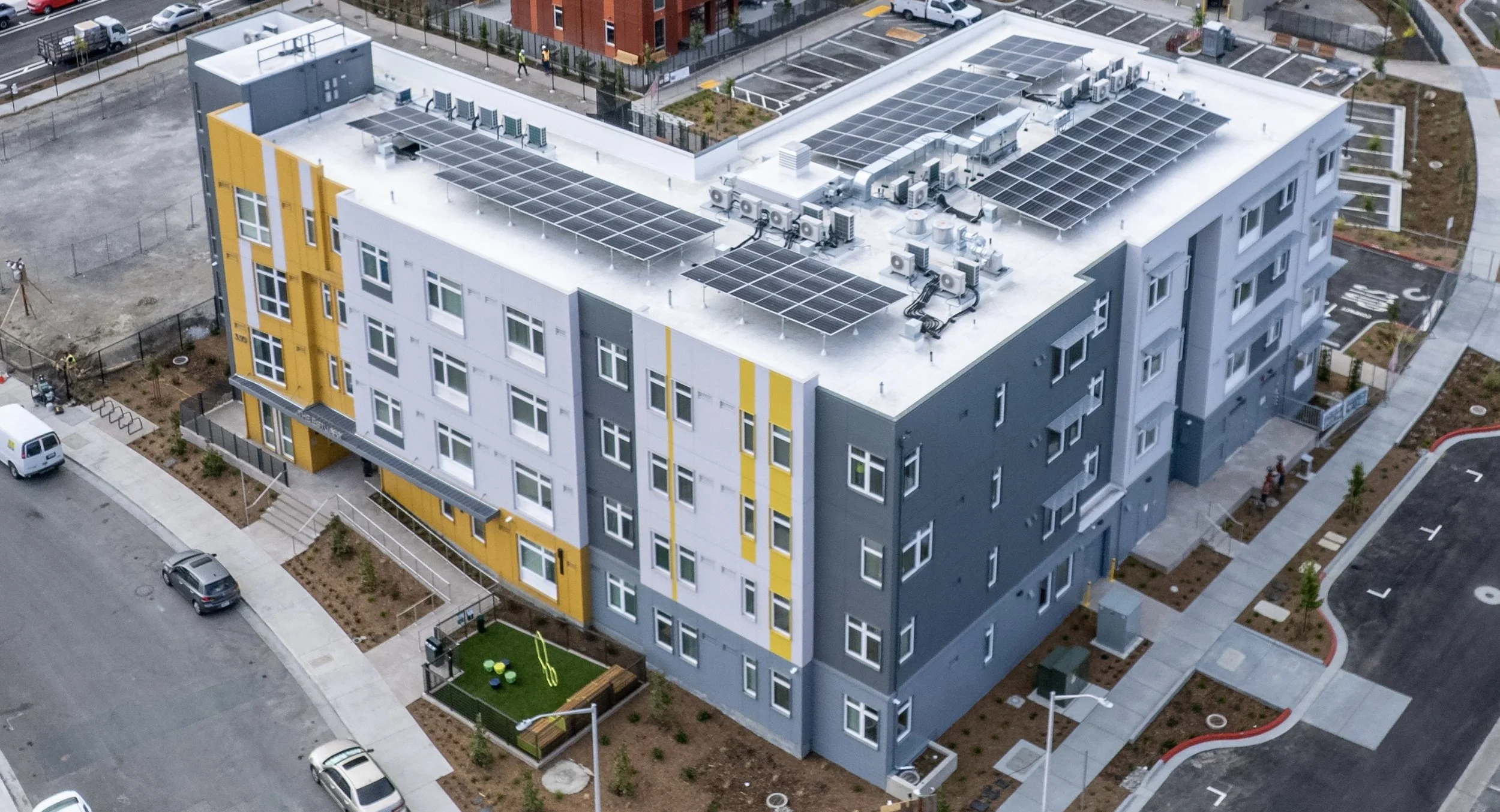 GreenPoint Rated residential complex yellow accents California sustainable multifamily housing development