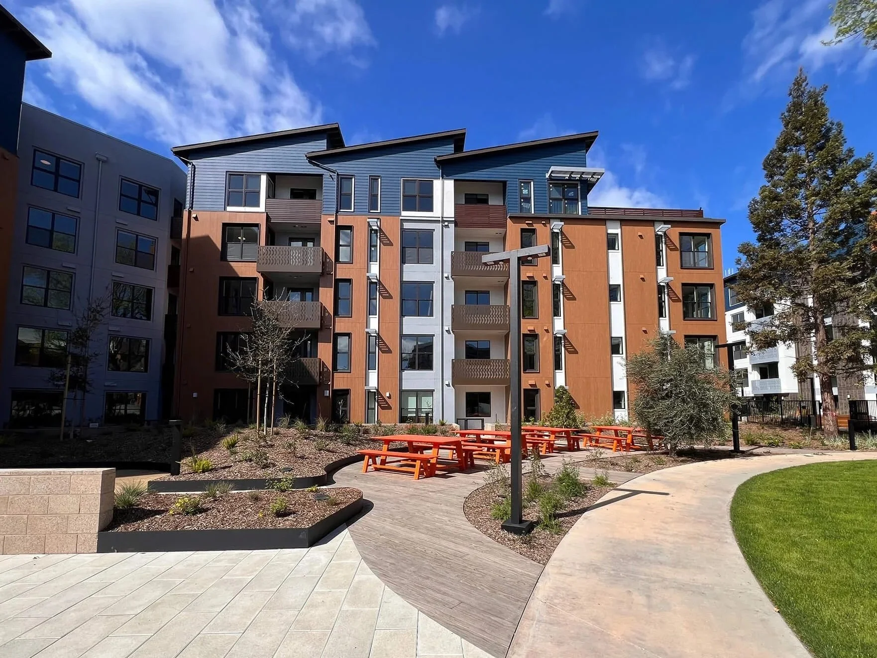 GreenPoint Rated residential building blue orange facade California green housing development